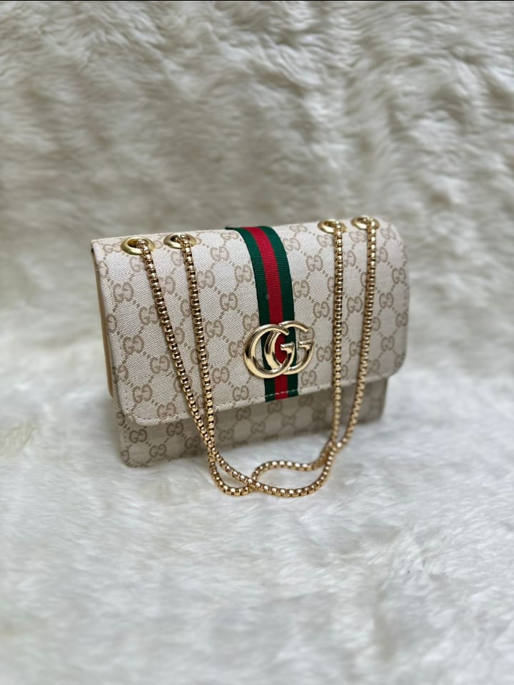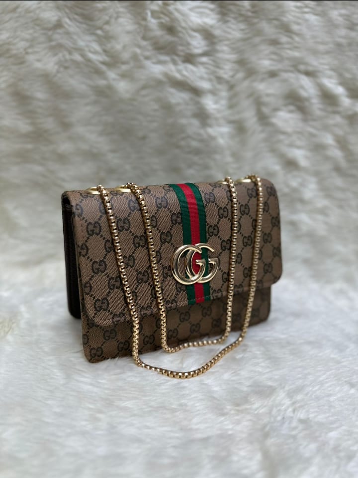 Elevate your everyday style with this premium luxury-inspired crossbody bag. Featuring a classic monogram design, gold chain strap, and signature stripe detailing — perfect for daily use, outings, and special events.